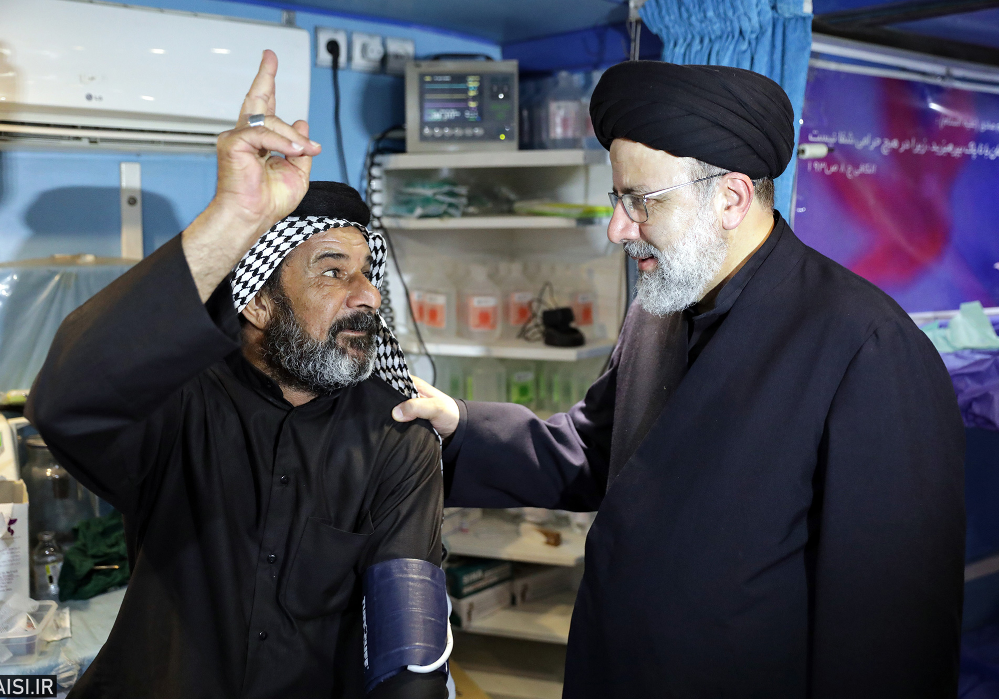 حجت الاسلام رئیسی ضمن شرکت در حماسه راهپیمایی اربعین حسینی از بیمارستان سیار رضوی در مسیر نجف به کربلا بازدید کرد.